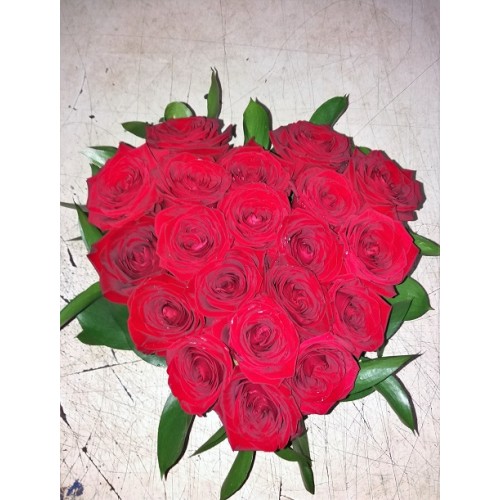 Aranjament executat in forma de inima din 19 fire trandafiri
