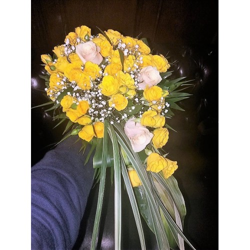 Buchet de mireasa din trandafiri si minirosa model pe o singura parte