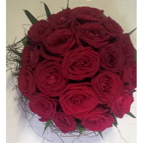 Buchet de mireasa in forma de semisfera din 19 trandafiri