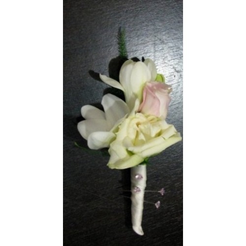 Cocarde din trandafiri si frezii cu maner si ac
