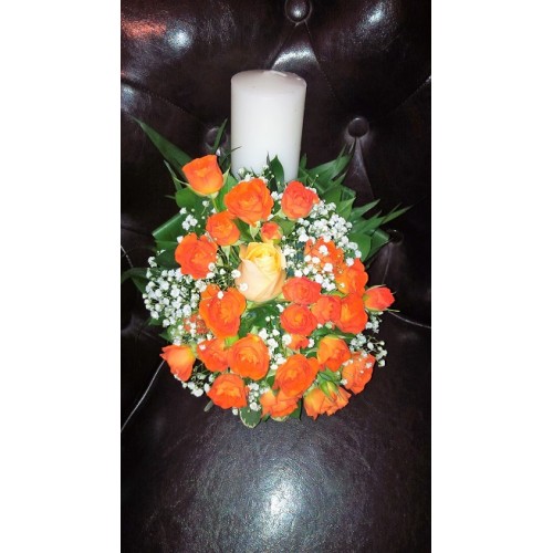 Lumanari de nunta scurte cu trandafiri si minirosa.