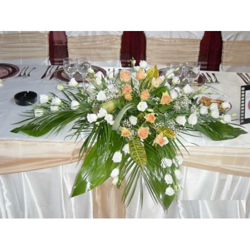 Aranjament de masa trandafiri si lisianthus